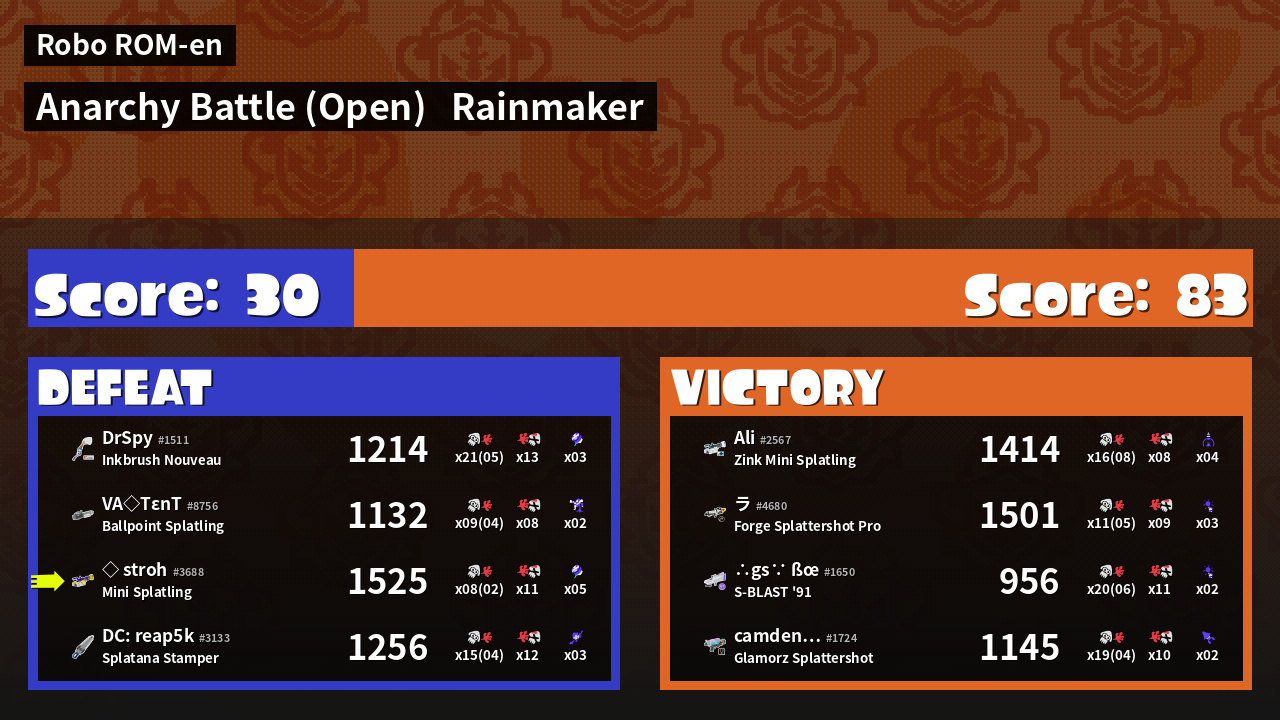 | Mode | Rainmaker - Anarchy Battle (Open) | ||