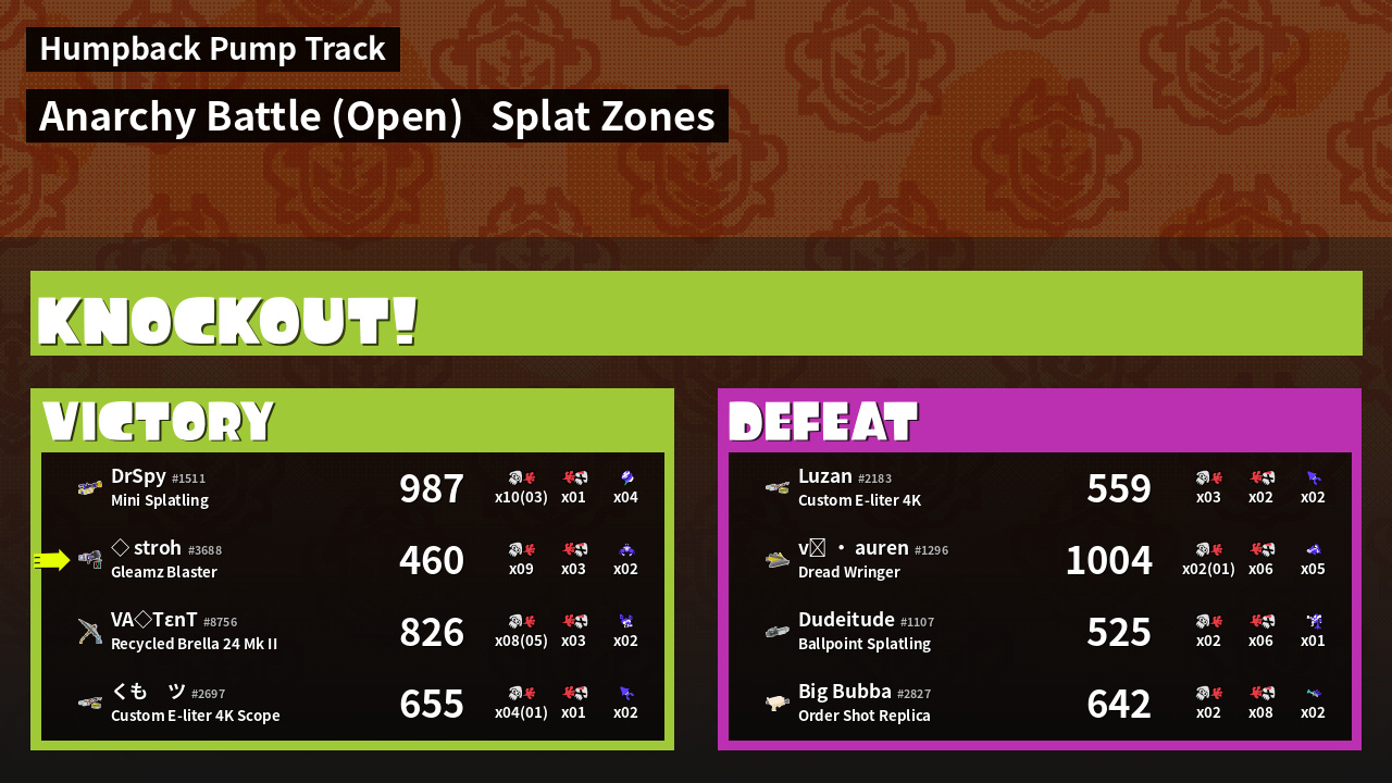| Mode | Splat Zones - Anarchy Battle (Open) | ||