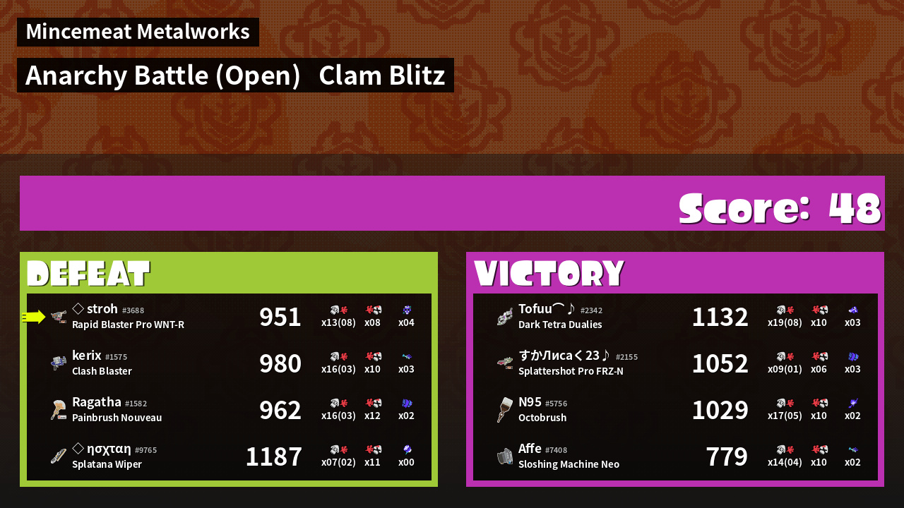 | Mode | Clam Blitz - Anarchy Battle (Open) | ||