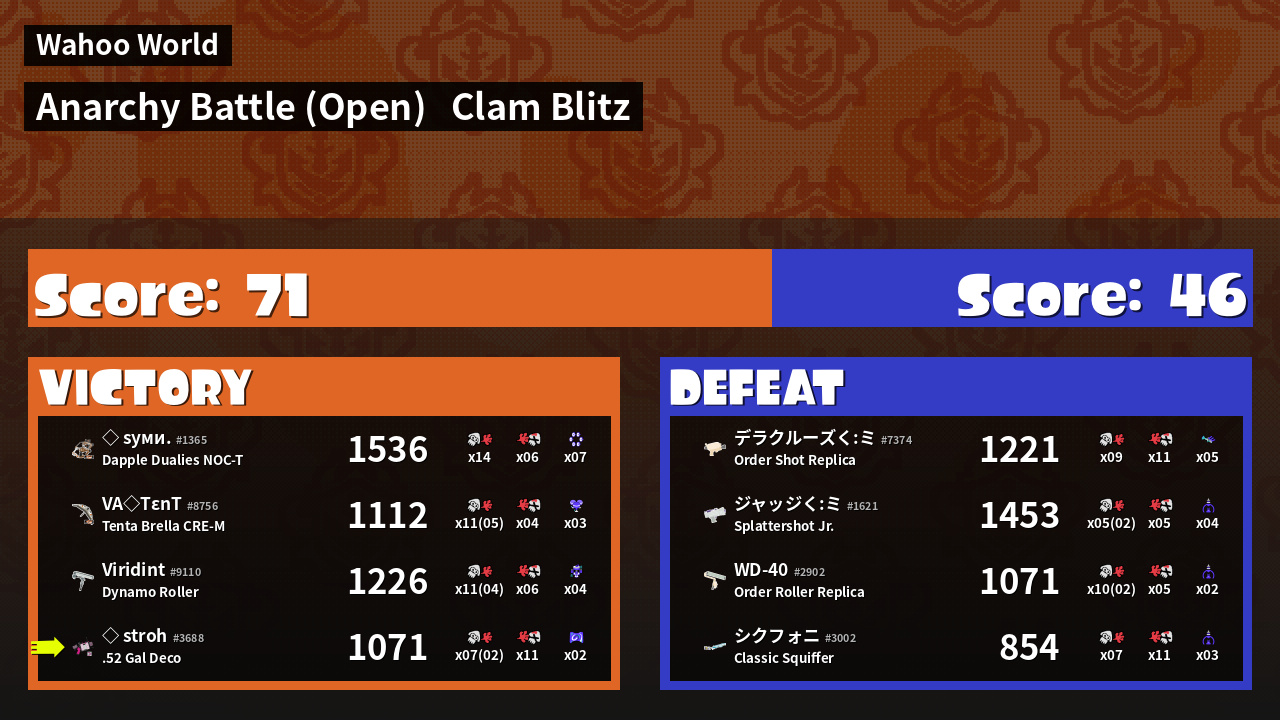 | Mode | Clam Blitz - Anarchy Battle (Open) | ||