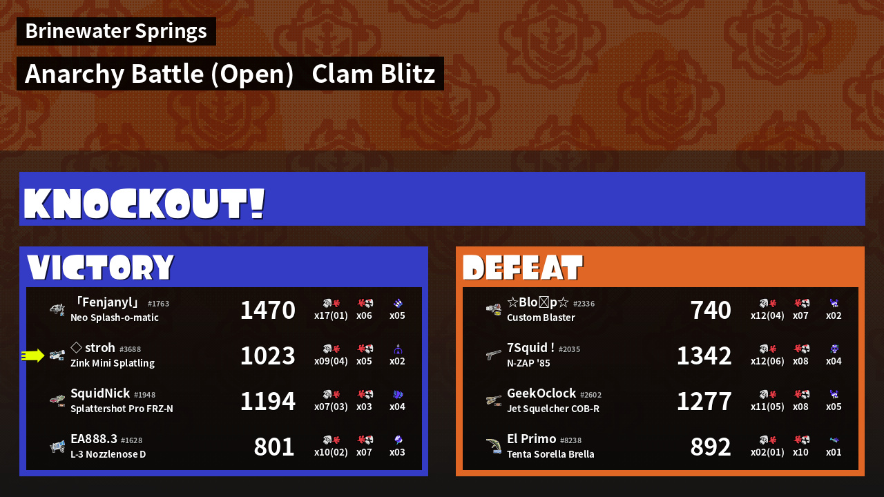| Mode | Clam Blitz - Anarchy Battle (Open) | ||