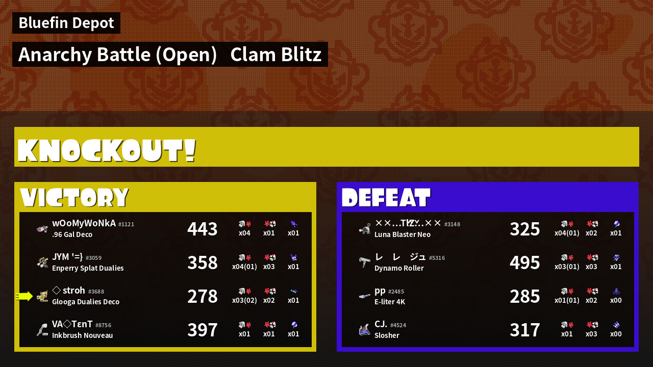 | Mode | Clam Blitz - Anarchy Battle (Open) | ||