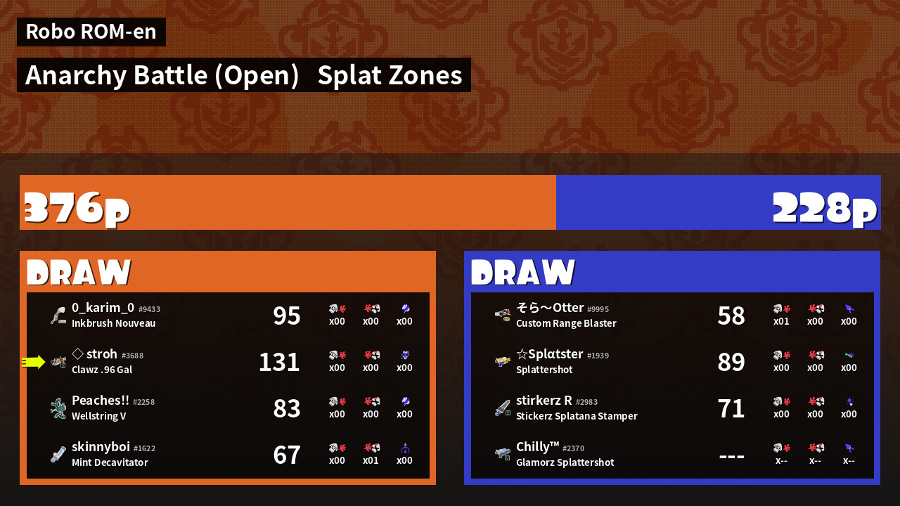 | Mode | Splat Zones - Anarchy Battle (Open) | ||