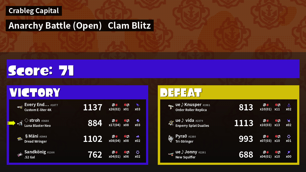 Kills / Deaths | 13 + 4 / 8 > Kill Ratio: 1.62 | ||