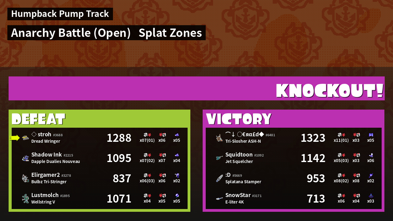 Kills / Deaths | 6 + 1 / 6 = Kill Ratio: 1.00 | ||