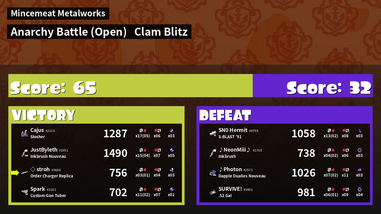 | Mode | Clam Blitz - Anarchy Battle (Open) | ||