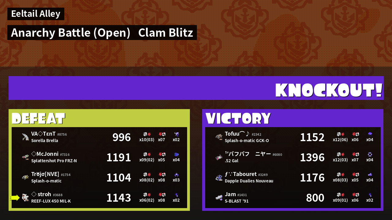 | Mode | Clam Blitz - Anarchy Battle (Open) | ||
