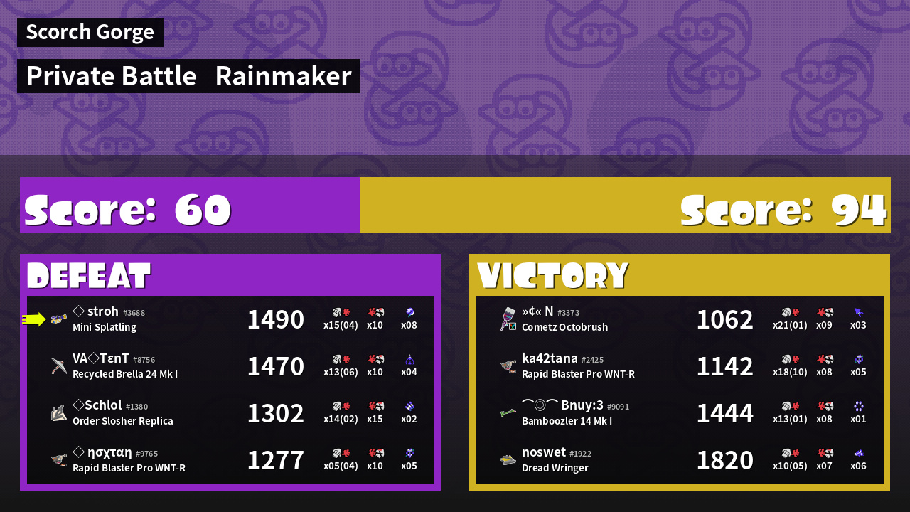 | Medals | #1 Overall Splatter #1 Turf Inker #1 Popular Target | ||