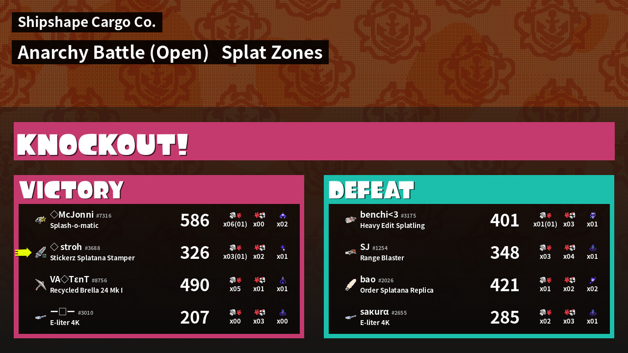| Mode |    Splat Zones -   Anarchy Battle (Open) | ||