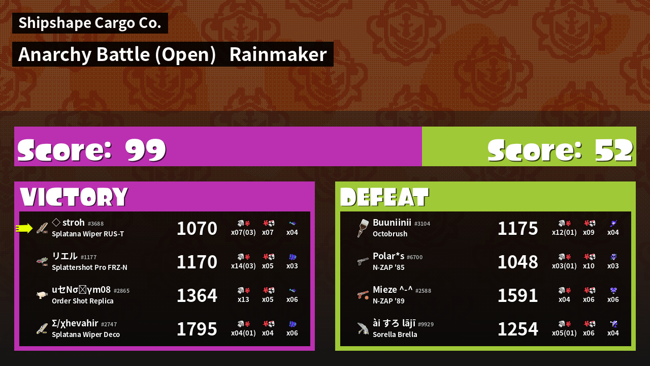 | Mode | Rainmaker - Anarchy Battle (Open) | ||