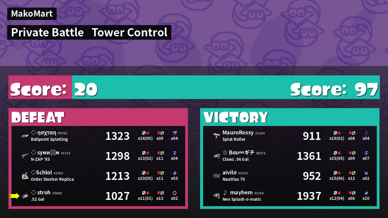 | Medals | #1 Damage Taker First Splat! #1 Killer Wail 5.1 User | ||