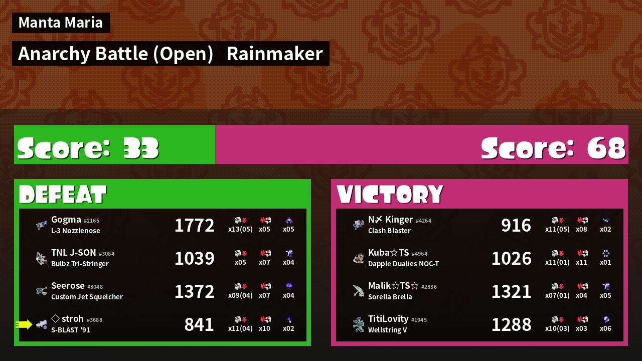| Mode | Rainmaker - Anarchy Battle (Open) | ||