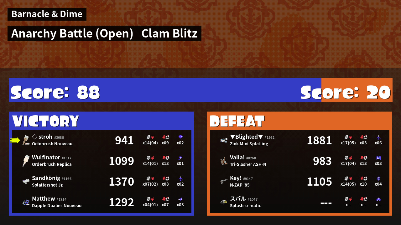 | Mode | Clam Blitz - Anarchy Battle (Open) | ||