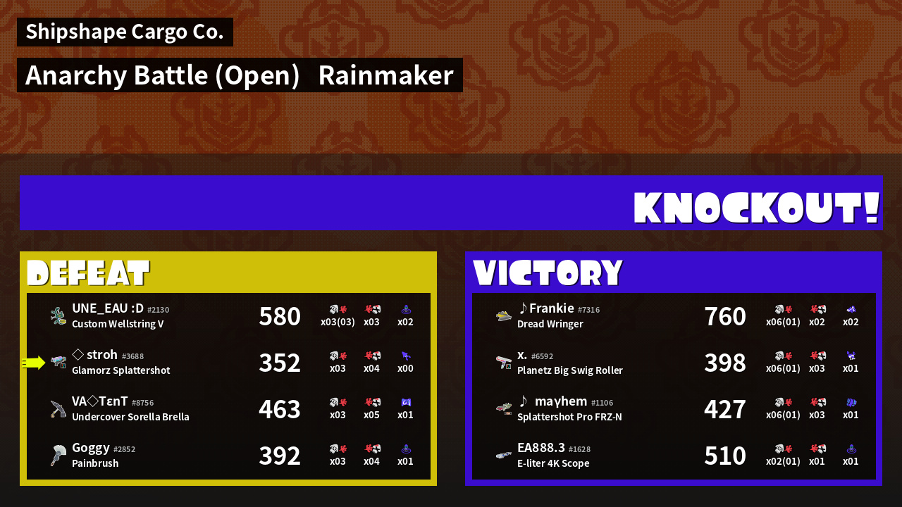 | Mode | Rainmaker - Anarchy Battle (Open) | ||