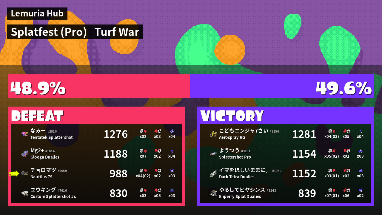 | Mode | Turf War - Splatfest (Pro) | ||