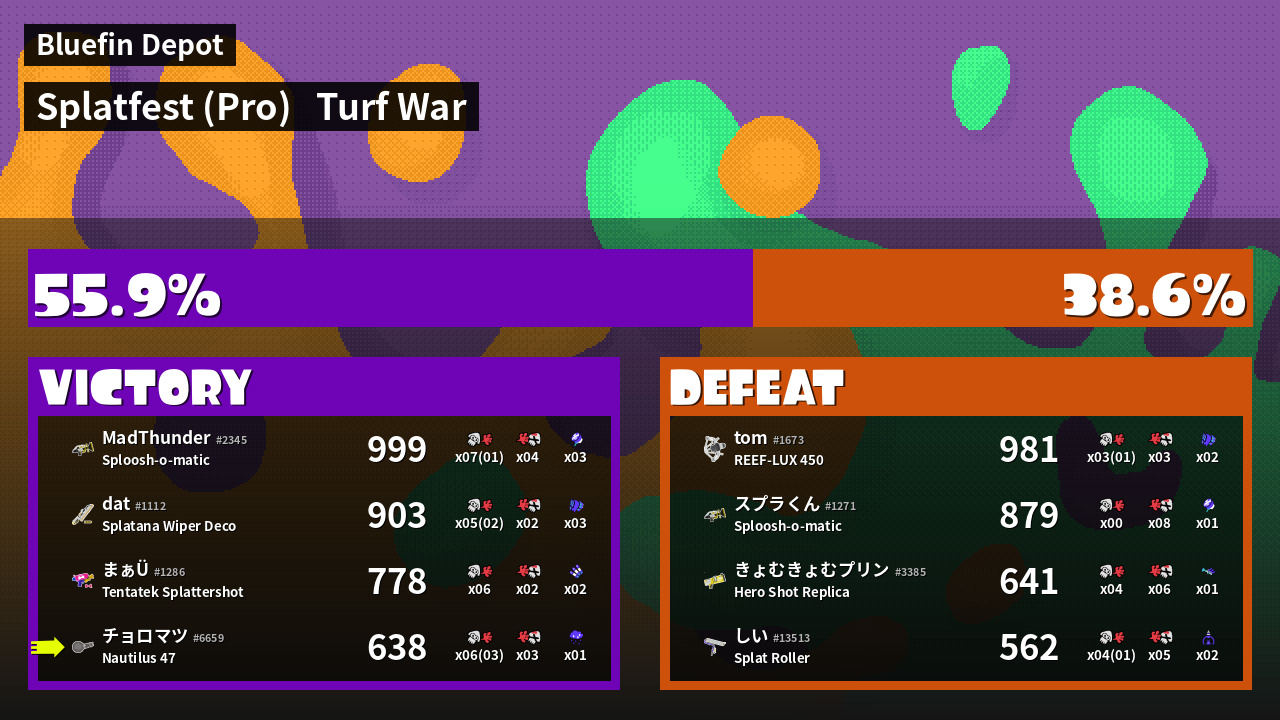 | Mode | Turf War - Splatfest (Pro) | ||