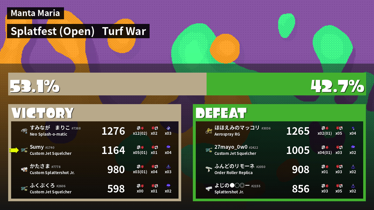 | Medals | #1 Damage Taker #2 Overall Splatter #2 Turf Inker | ||