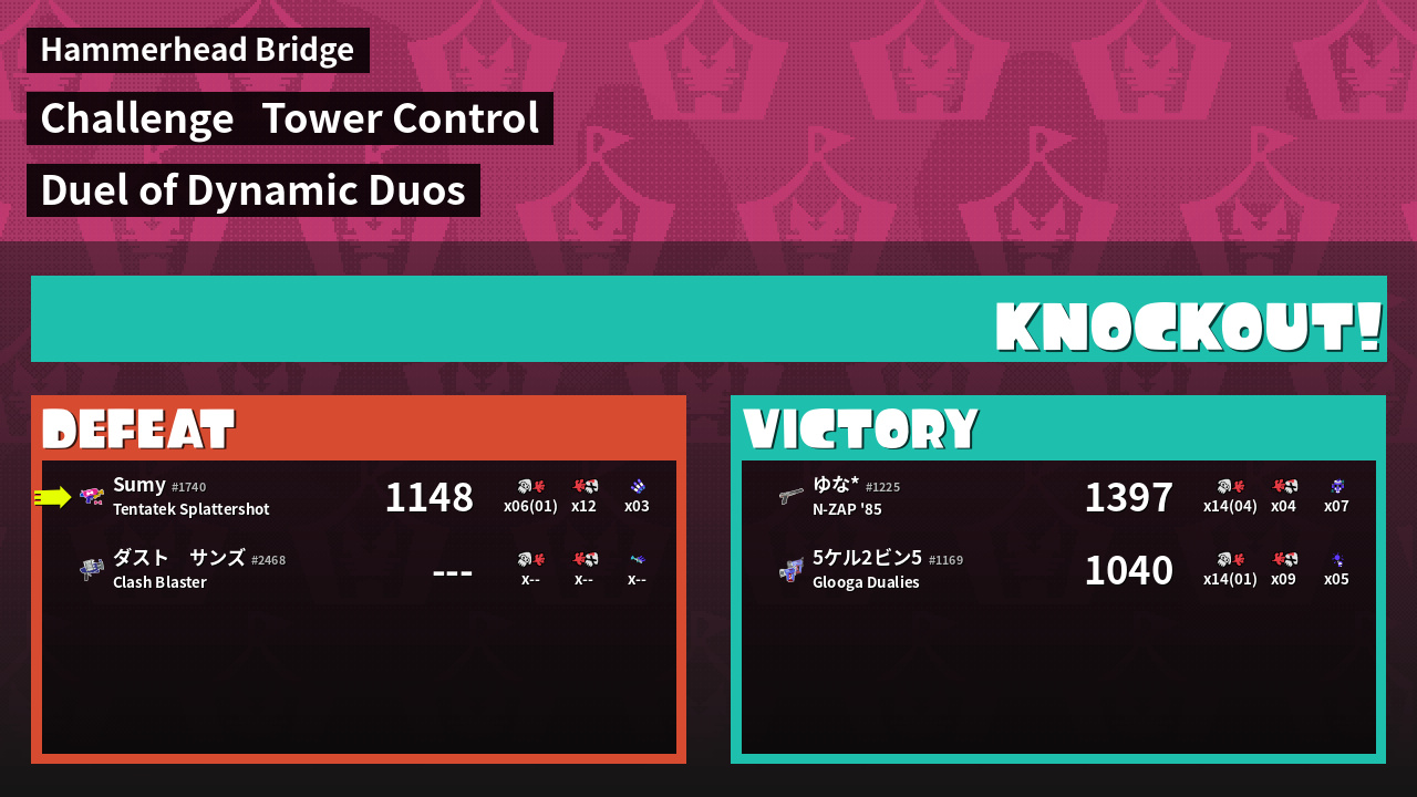 | Medals | #1 Overall Splatter #1 Turf Inker #1 Enemy Splatter | ||