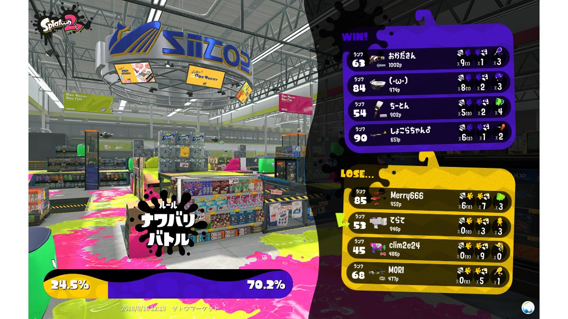 | Mode | Turf War - Regular Battle | ||||||||||||||||||||||||||||||||||