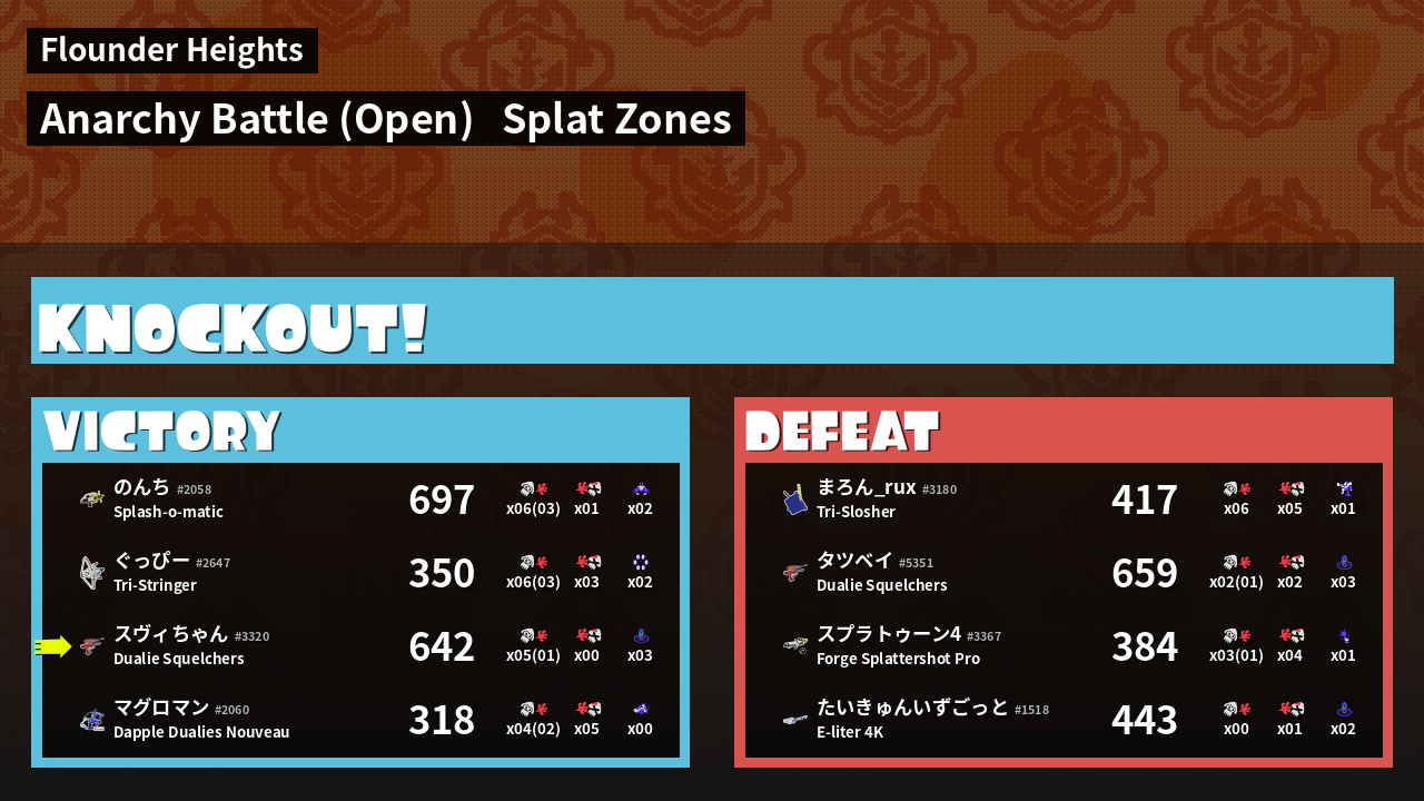 | Mode | Splat Zones - Anarchy Battle (Open) | ||