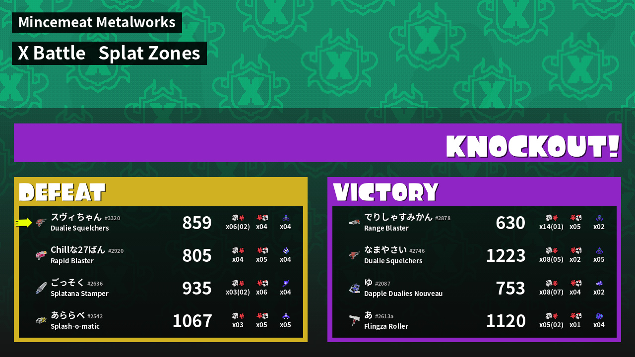 | Medals | #1 Overall Splatter #1 Splat Zone Guard #1 Popular Target | ||