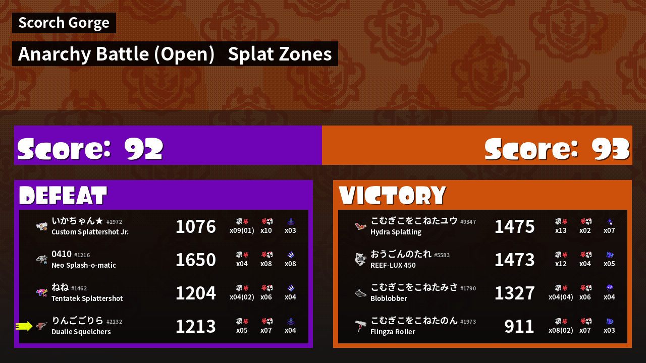 | Mode | Splat Zones - Anarchy Battle (Open) | ||