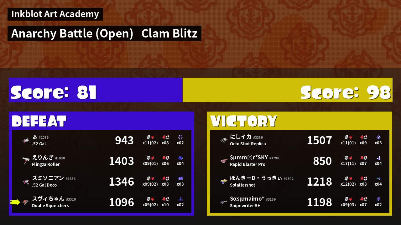 Name | Weapon | Inked | ![]() |