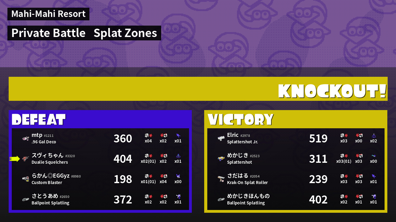 | Medals | #1 Turf Inker #1 Splat Assister #1 Ink Consumer | ||