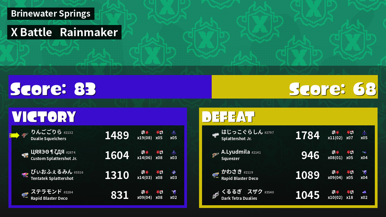 | Mode | Rainmaker - X Battle | ||