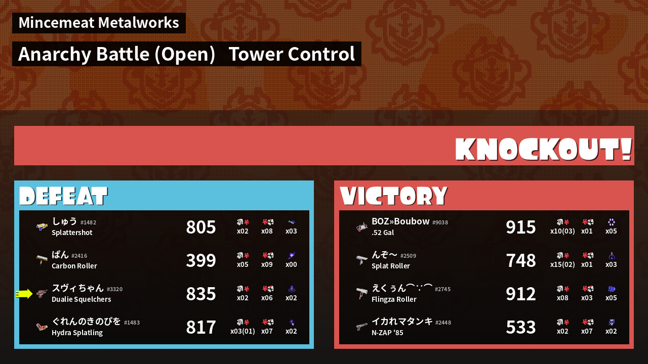 | Mode | Tower Control - Anarchy Battle (Open) | ||