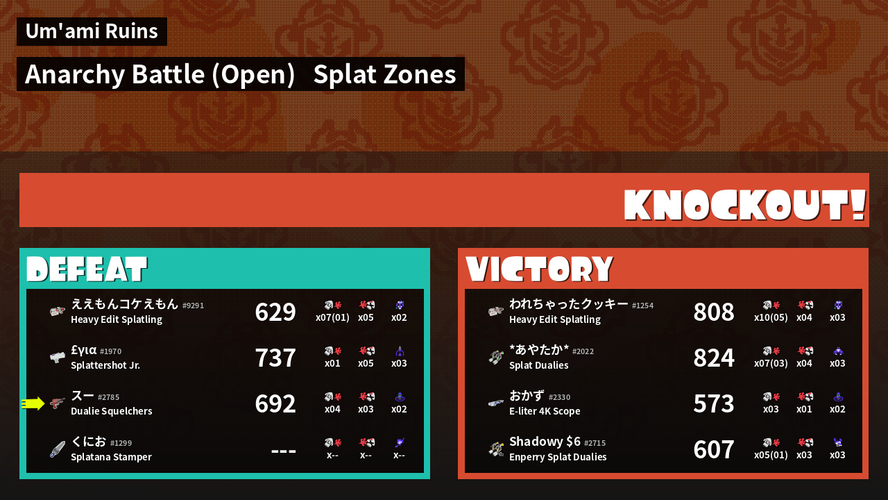 | Mode | Splat Zones - Anarchy Battle (Open) | ||
