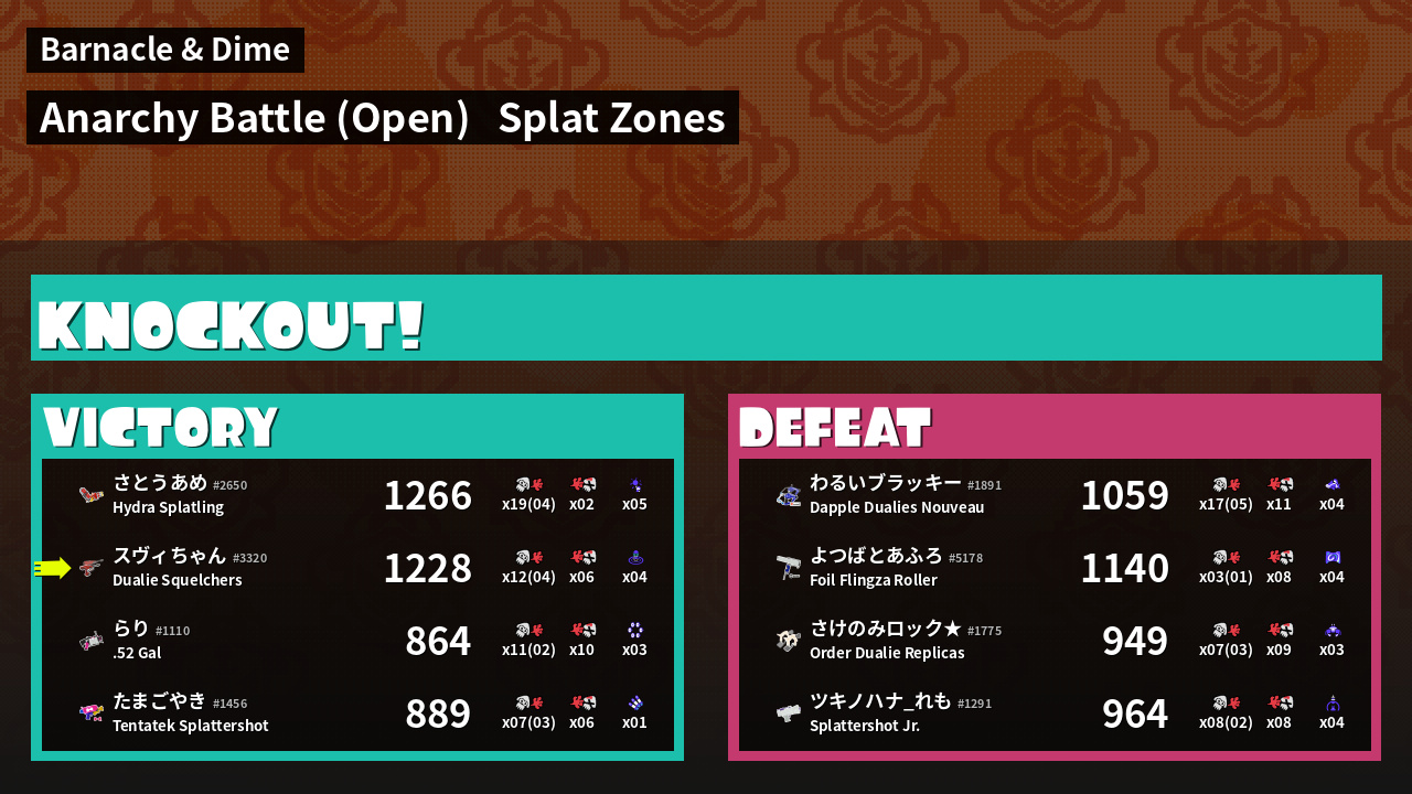 | Mode | Splat Zones - Anarchy Battle (Open) | ||