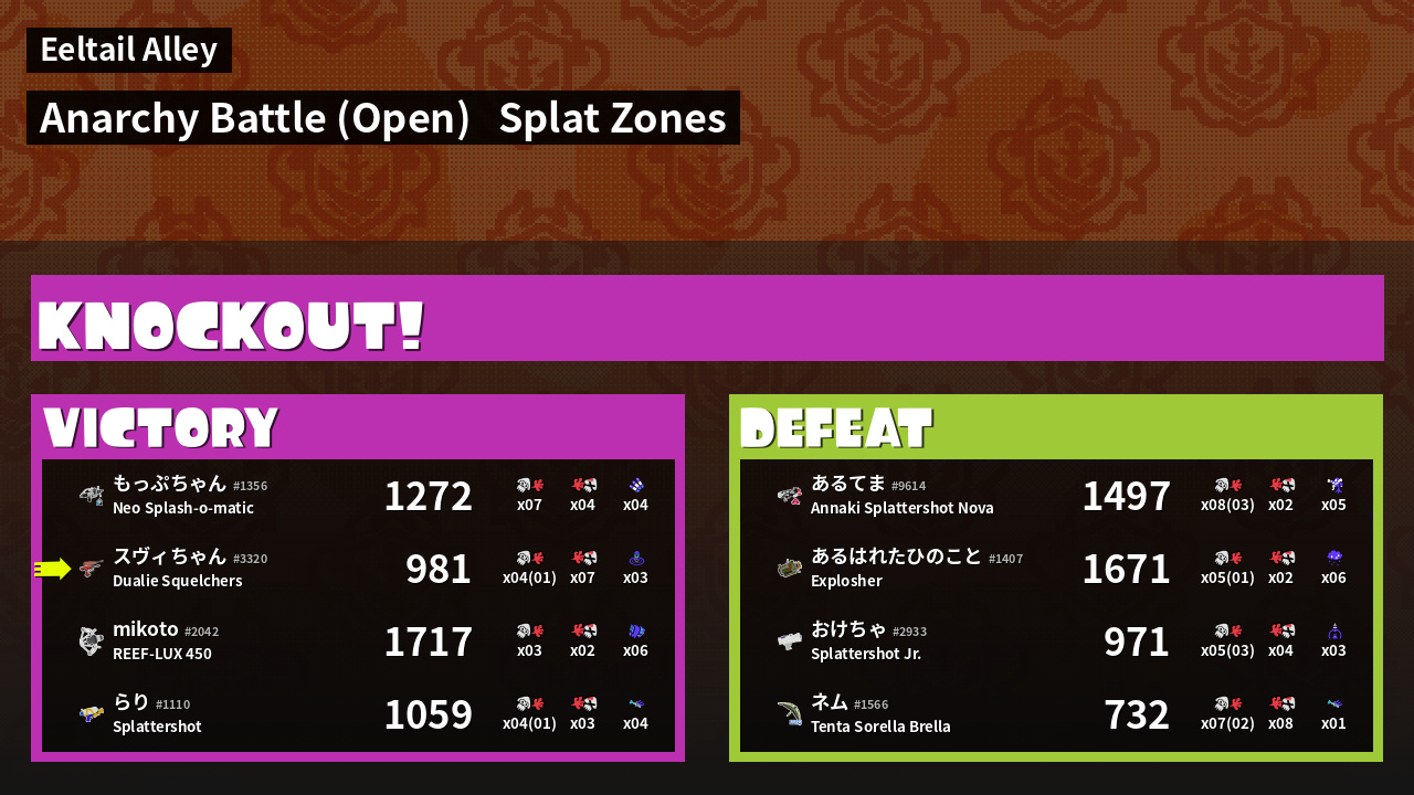 | Mode | Splat Zones - Anarchy Battle (Open) | ||