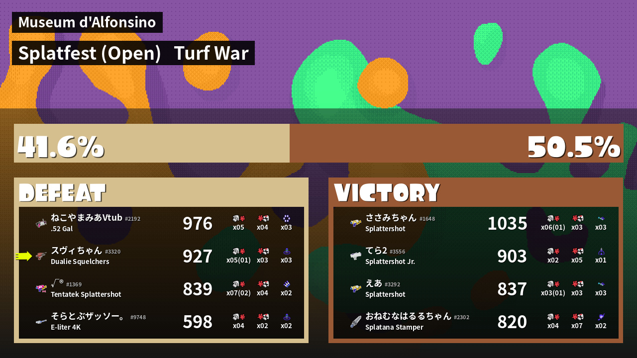 | Medals | #1 Popular Target #1 Enemy-Base Inker #1 Ground Traveler | ||