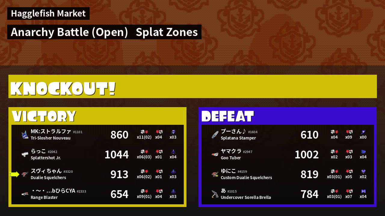 | Mode | Splat Zones - Anarchy Battle (Open) | ||