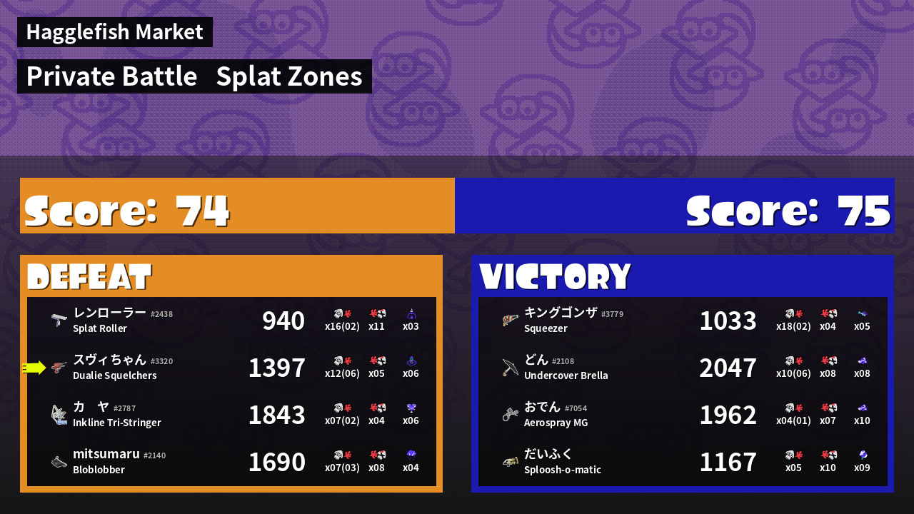 Results of スヴィちゃん's Battle