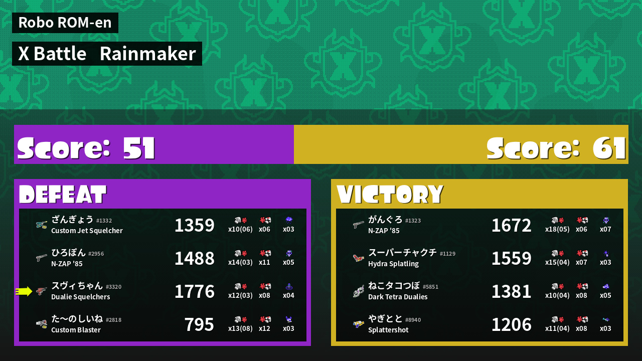 | Mode | Rainmaker - X Battle | ||