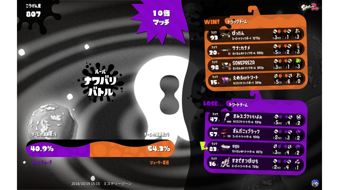| Mode | Turf War - Splatfest (Team) | |||||||||||||||||||||||||||||||||||||