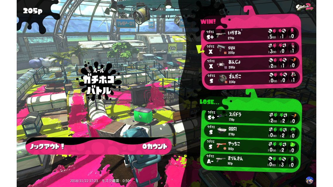| Name | Weapon | Level | Rank | Inked | k+a/sp | k/d |
