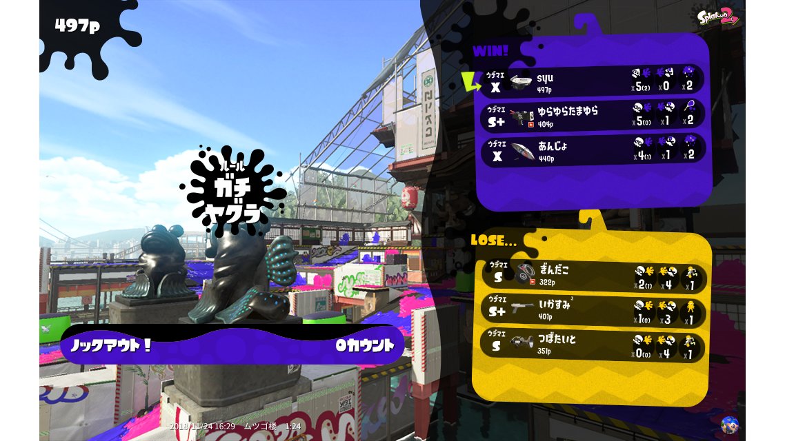 | Name | Weapon | Level | Rank | Inked | k+a/sp | k/d |