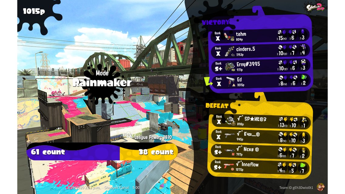 | Mode | Rainmaker - League Battle (Quad) | |||||||||||||||||||||||||||||||