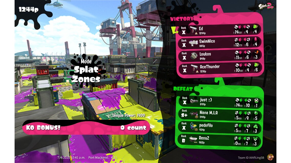 | Mode | Splat Zones - League Battle (Twin) | ||||||||||||||||||||||||||||||||||