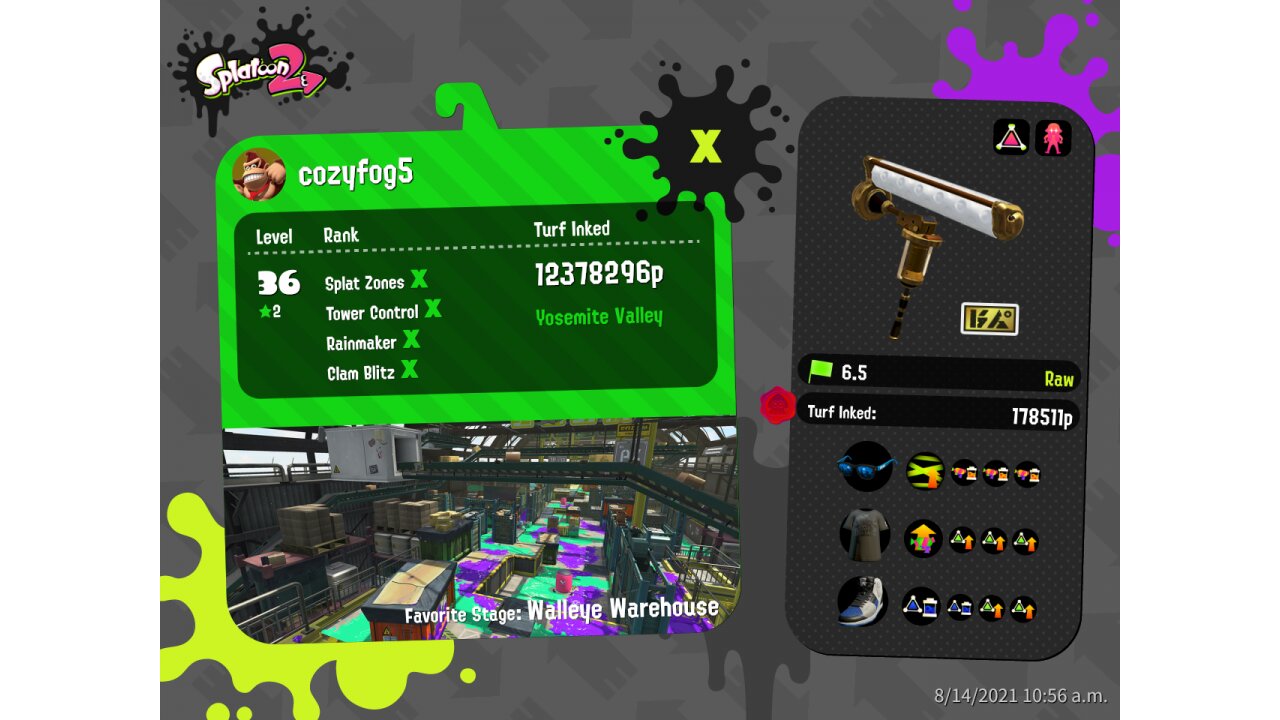 | SplatNet Battle # | 14,498 | ||||||||||||||||||||||||||||||||||