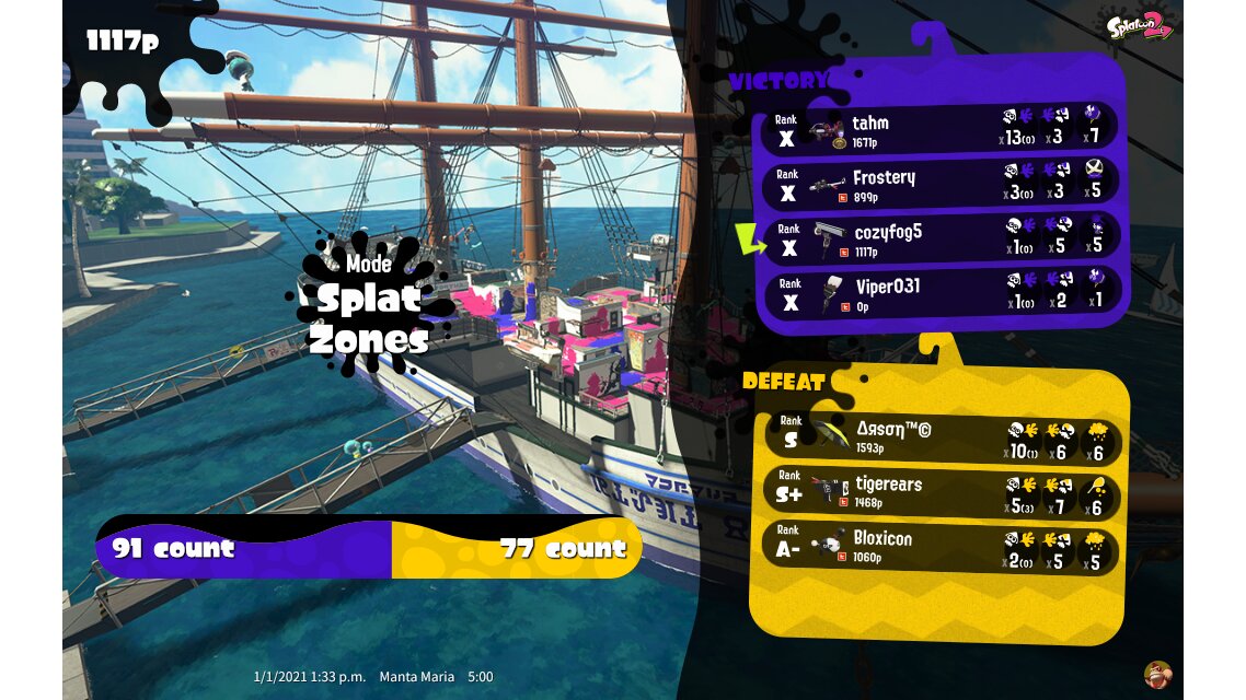 | Mode | Splat Zones - Private Battle | |||||||||||||||||||||||||||||||