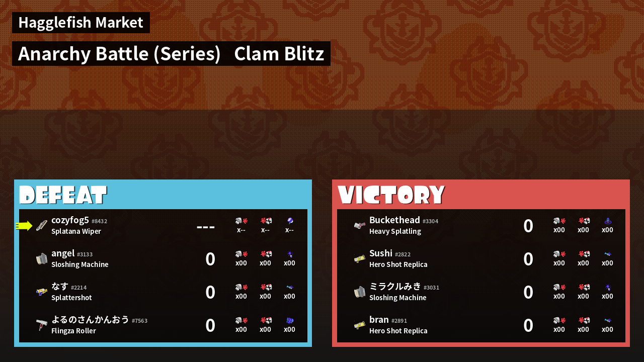 | Mode | Clam Blitz - Anarchy Battle (Series) | ||