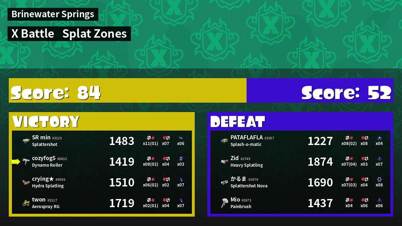 | Medals | #1 Splat Zone Guard #1 Splat Assister #1 Ground Traveler | ||