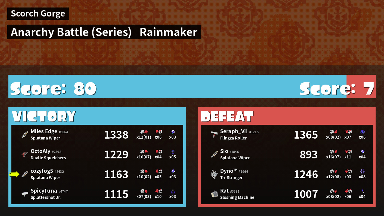 | Medals | #1 Rainmaker Stopper #1 Ultra Stamp User #2 Overall Splatter | ||