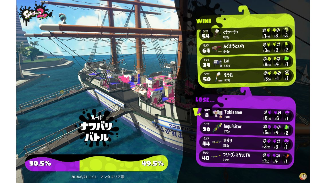 | Mode | Turf War - Regular Battle | ||||||||||||||||||||||||||||||||||