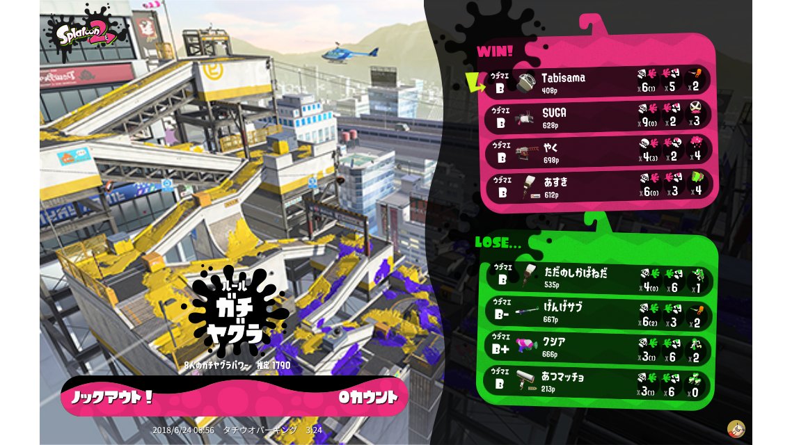 | Name | Weapon | Level | Rank | Inked | k+a/sp | k/d |
