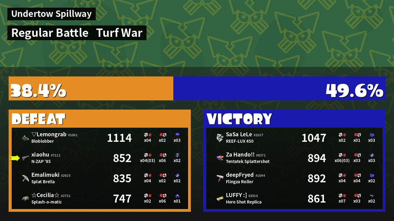 | Medals | #1 Overall Splatter #1 Home-Base Inker #1 Splat Assister | ||